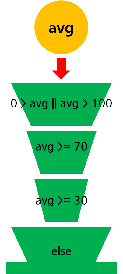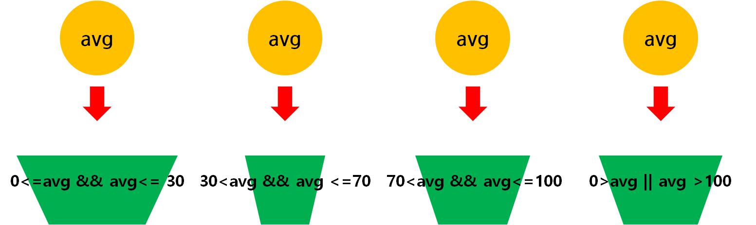 전부 if만을 쓴 코드는 각각 모든 if문에 avg(평균 성적)를 처리합니다.