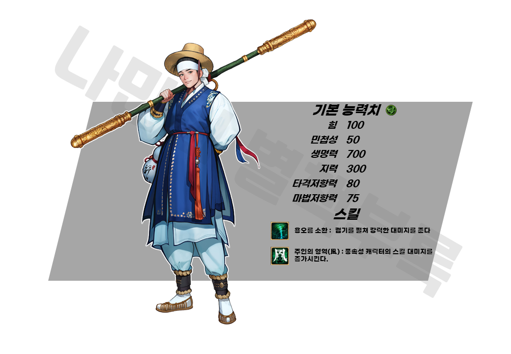 전설장수 '도사 홍길동'은 풍속성으로 몬스터의 타격저항을 감소시키고