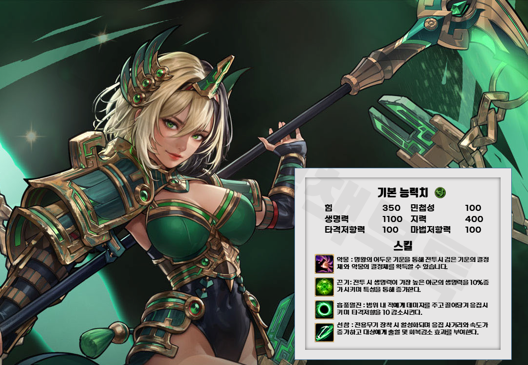 - '흡풍멸진' 생명력에 의해 데미지가 증가하고 타격계열 영향을 받습니다.