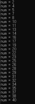 num이 40이 되면 break가 실행돼서 무한 반복인while (1)을 벗어나게 했습니다.