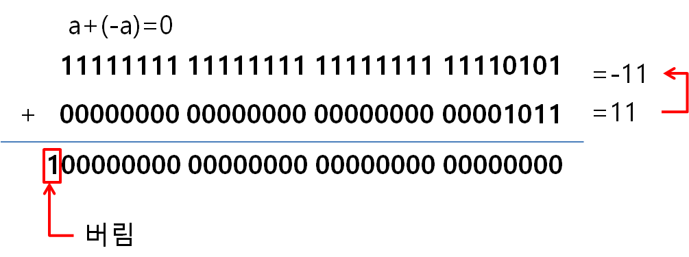 음수가 나오는 이유는 첫 번째 맨 앞 비트는 부호 비트입니다. 0에서 1로 변하기 때문에 음수가 됩니다.