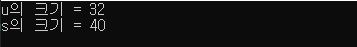 union uni_1 u;의 크기는 32 struct str_1 s;의 크기는 40이 나왔습니다.
