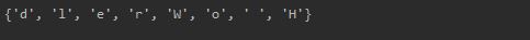 집합은 수학에서 사용하는 집합처럼 합집합, 교집합, 차집합, 대칭차집합연산을 지원합니다.