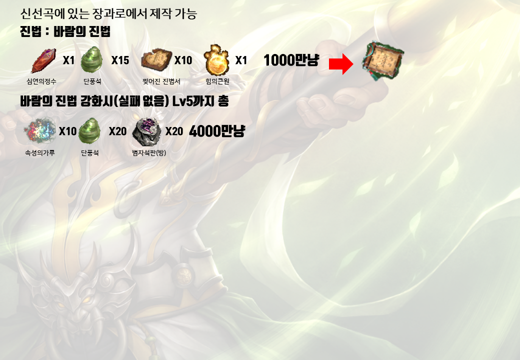 게임 자료실/거상 거상 - 광목천왕 자료수집중 2021. 2. 15. 목차 반응형 -사천왕 만들기전 알아야할 점- -광목천왕 만들기- -광목천왕 정보- -전용 장비- 공유하기 게시글 관리 나만의 별책부록 저작자표시 비영리 (새창열림) '게임 자료실 > 거상' 카테고리의 다른 글 거상 - 증장천왕 (0) 2021.02.19 거상 - 지국천왕 (2) 2021.02.16 거상 - 다문천왕 (0) 2021.02.05 거상 - 신수 (0) 2021.02.03 거상 - 군다리 명왕 (0) 2021.01.30 댓글