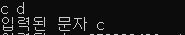단 문자를 연속으로 받는 경우 스페이스(공백)또는 엔터를 문자로 처리하기 때문에 연속으로 두자를 써야 합니다.