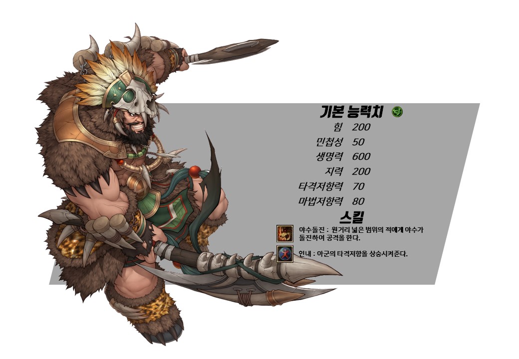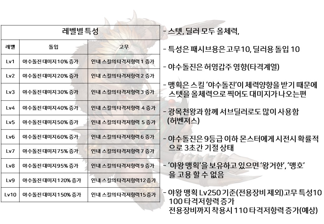 '야수왕 맹호'보다도 더 많은 타격저항력 증가와 높은 대미지를 보여줍니다.