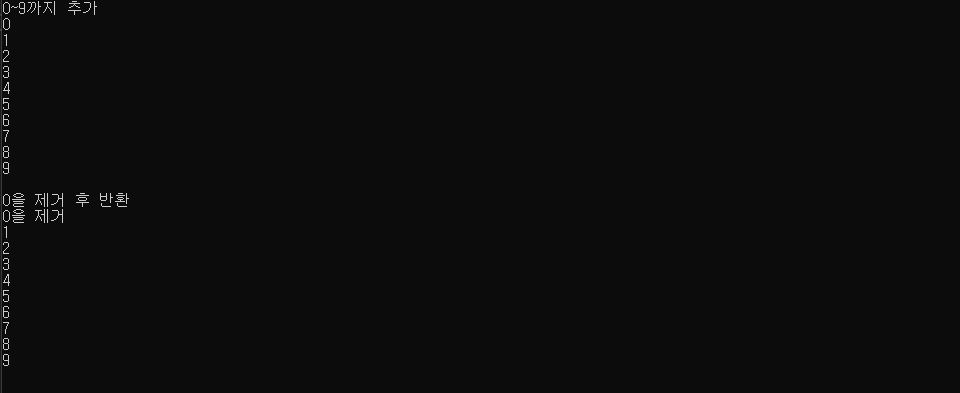Console.WriteLine("{0}을 제거", numbers.Dequeue()); ;