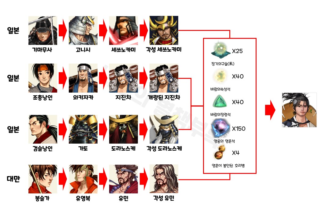 처음 나온 4 전설 장수(초선, 주몽, 맹획, 노부츠나) 보다 들어가는 재료가 더 많습니다.