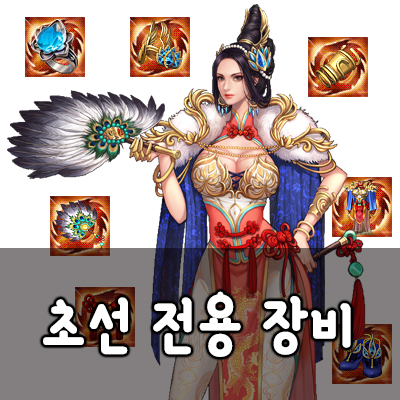초선의 관 +10 레벨 : 210 방어력 : 100 힘 : 100 생명력 : 150 지력 : 225 타격저항 : 35% 마법저항 : 35% |